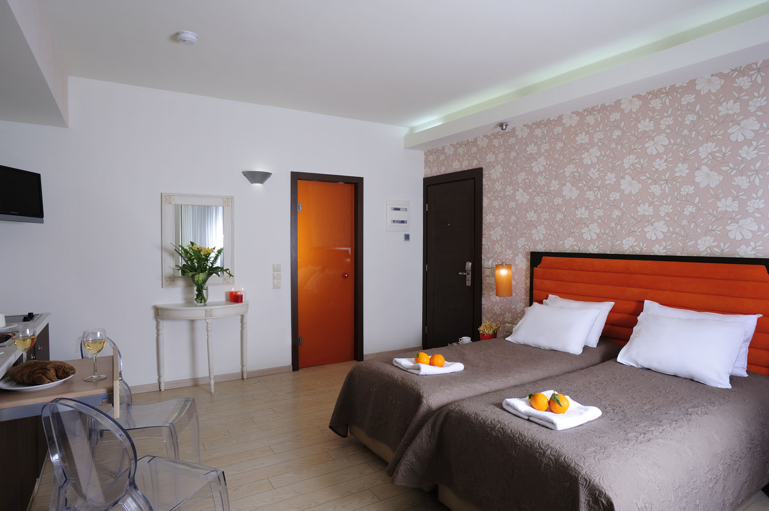 The studio & standard studio has everything you need for a beautiful stay. Cozy and well-designed, it is recommended for visitors who want nice and affordable accommodation. The ground floor studios are ideal for people with special needs, who will be more than satisfied by the ample amenities of the room and of Steris Hotel.